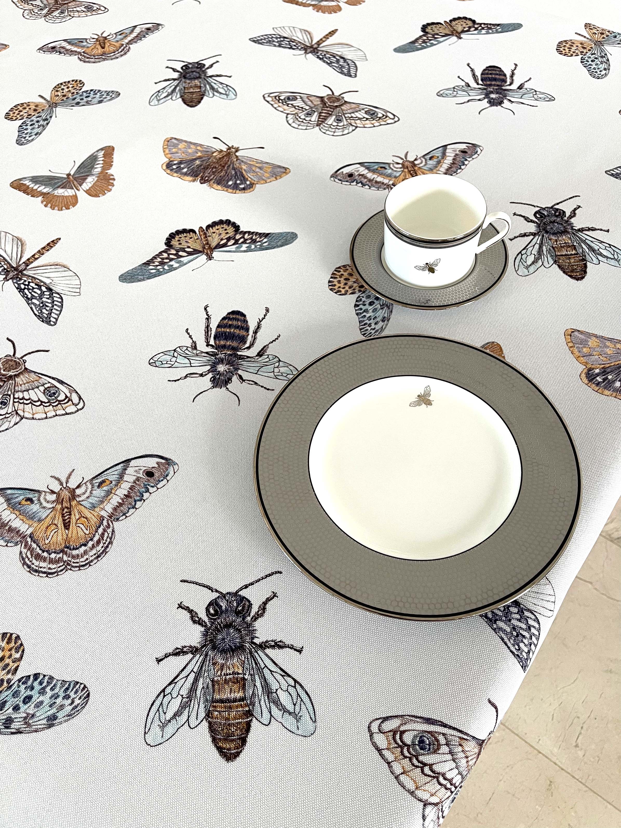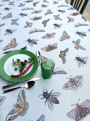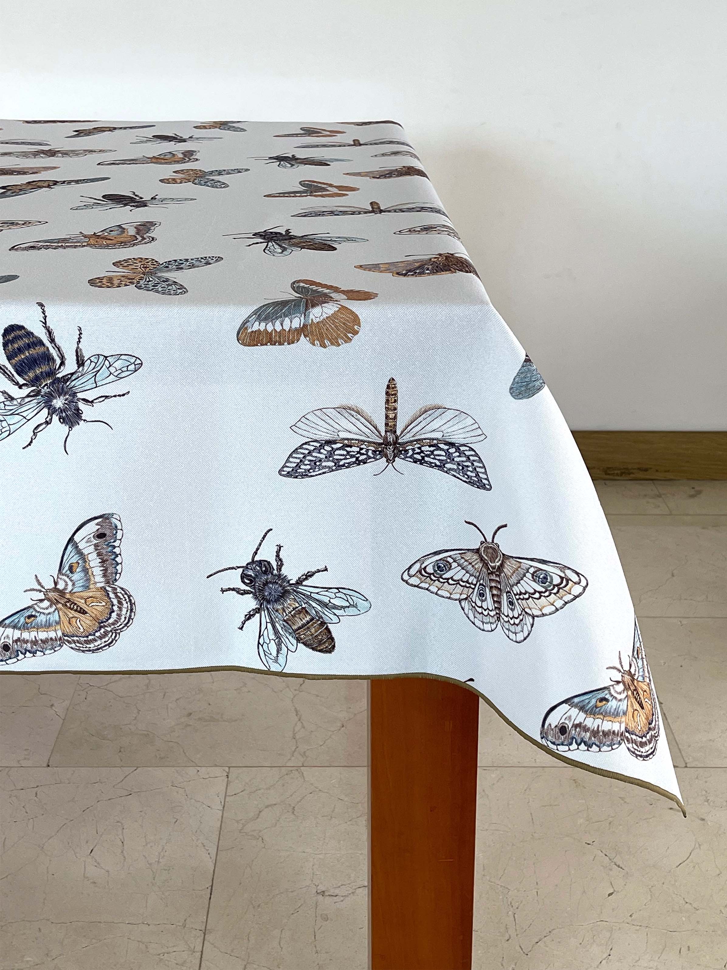 Mantel para honrar todos los insectos que polinizan nuestras flores y frutos. Tela repele líquidos y es de fácil limpieza. Lavar a máquina, no usar secadora.