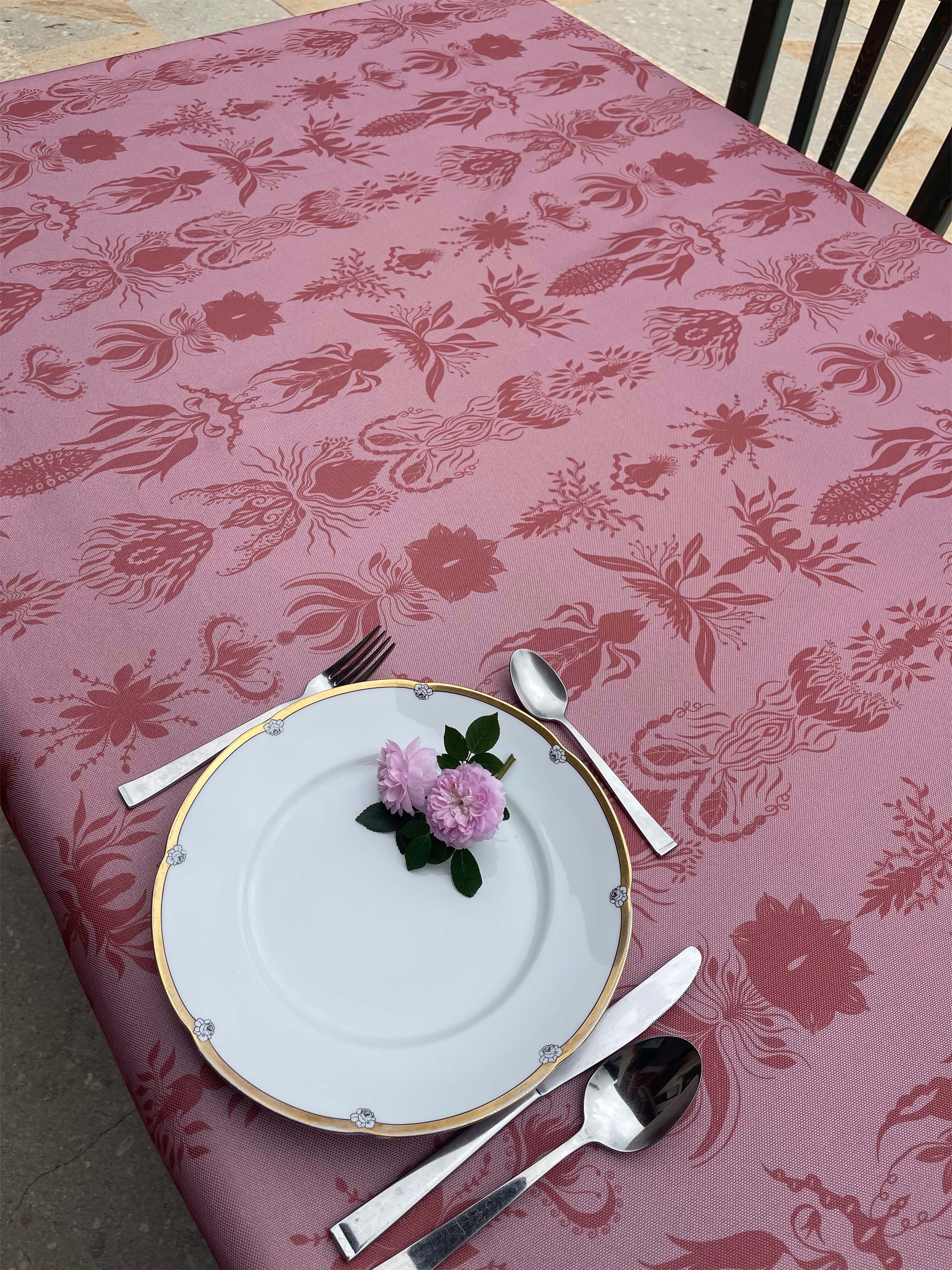Mantel para celebrar la geometría de las flores. Tela repele líquidos y es de fácil limpieza. Lavar a máquina, no usar secadora.